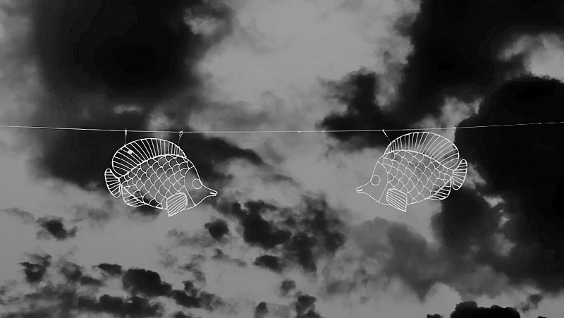 Nue, sur le dos, tu nages toujours à contre courant, je t'ai offert ces nuages iridescents, afin que tu puissent observer l'oiseau disparu.Regarde comme il ne souffre plus.